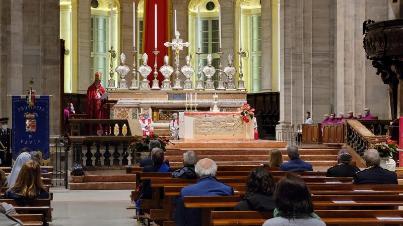 Sono alcuni significativi passaggi dell’omelia del Vescovo di Pavia, Mons. Sanguineti, pronunciata durante il rito dei Vespri, nella serata di lunedì 24 maggio in Duomo. Il pensiero dei presenti (tra cui anche le autorità civili) è andato anche alla famiglia Biral, rimasta vittima del tragico incidente alla funivia del Mottarone di domenica scorsa: “Tutti avvertiamo come un brivido, e percepiamo che sarebbe disumano e ingiusto nascere, vivere, mettere al mondo dei figli, se tutto finisse con la morte, se noi uomini e donne fossimo strani esseri, una parentesi tra due nulla, abitati però da una sete immensa d’infinito, totalmente “squilibrati” rispetto agli altri viventi – ha detto Mons. Sanguineti -. Così, con l’animo ferito e nudo, questa sera guardiamo al segno delle Sante Spine: le spine della corona di Cristo, re umile e apparentemente sconfitto, deriso e umiliato. In Gesù, nel mistero della sua passione, rappresentata dalle Sante Spine che veneriamo da secoli, e della sua risurrezione dai morti, noi incontriamo e vediamo all’opera, in un segno umano, la presenza di un amore che è più potente della violenza, dell’ingiustizia, della morte. Dio, il Padre, in Cristo, suo Figlio, apparso tra noi in forma umana, si china sulla nostra miseria, sulle nostre