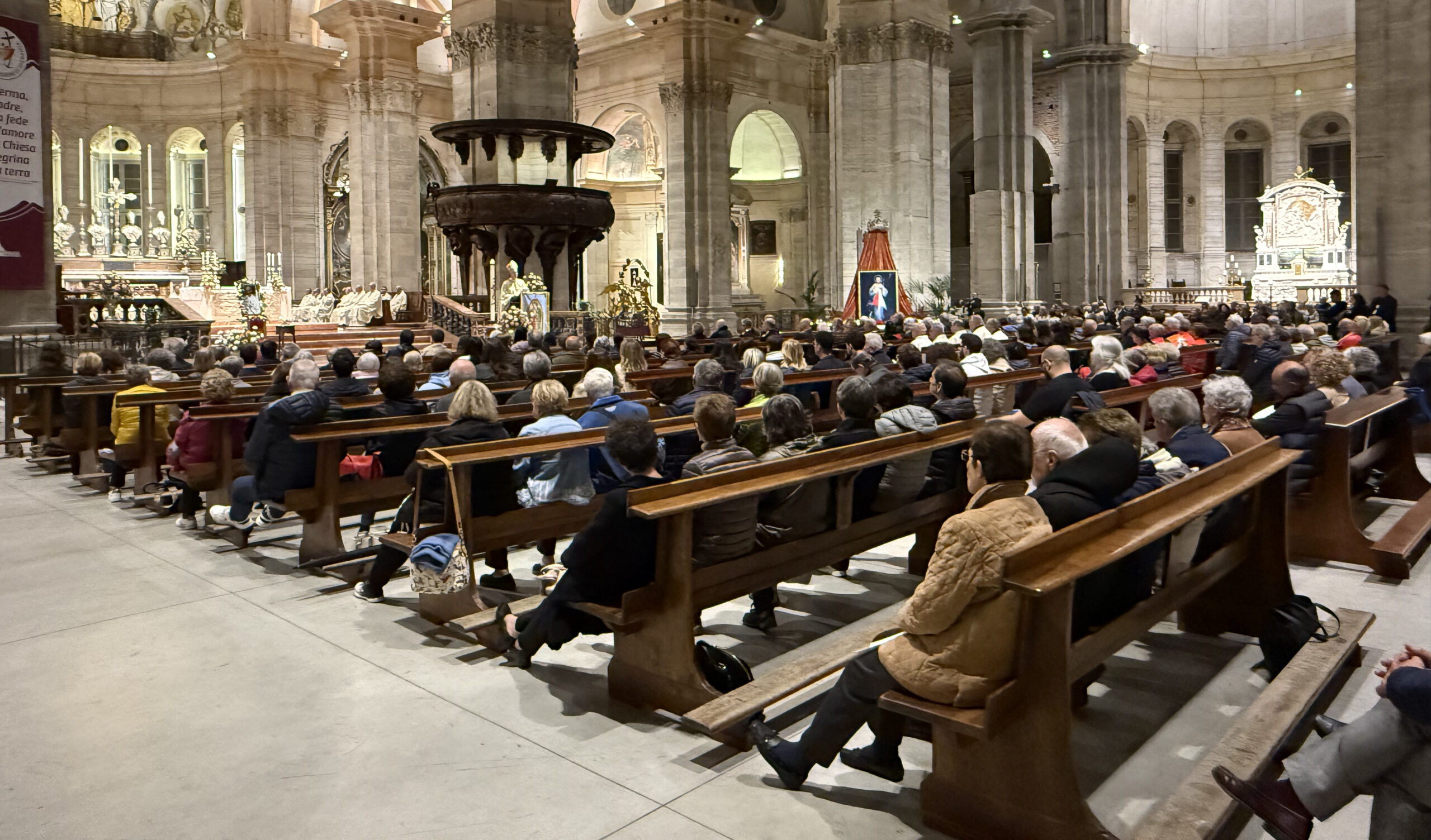 E’ uno dei passaggi significativi dell’omelia che Mons. Corrado Sanguineti, Vescovo di Pavia, ha pronunciato nella serata di mercoledì 23 aprile durante la celebrazione dedicata alla memoria di Papa Francesco; la Santa Messa si è tenuta in una Cattedrale gremita di fedeli, persone giunte per poter commemorare il Pontefice scomparso.