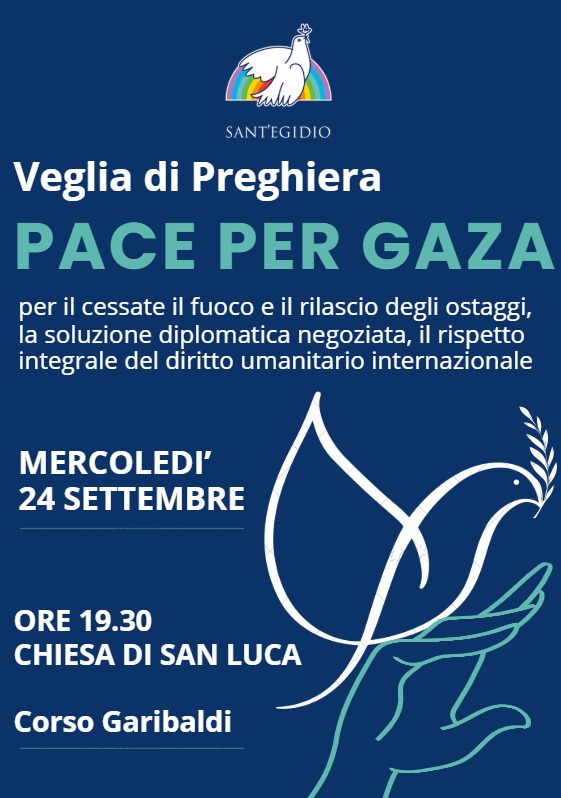 Si è svolta, alla presenza del Vescovo di Pavia, Mons. Corrado Sanguineti, la Veglia di Preghiera “Pace per Gaza” nella chiesa di San Luca di corso Garibaldi a Pavia alle ore 19.30 di mercoledì 24 settembre.