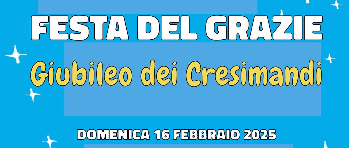 Domenica 16 febbraio alle ore 15 ritrovo in Borgo Ticino (sarà comunicato il luogo preciso) per l’inizio della Festa del Grazie, il tradizionale incontro tra il Vescovo e i cresimandi dell’anno 2025, durante il quale si vivrà il Giubileo. Da lì in pellegrinaggio fino alla Cattedrale.